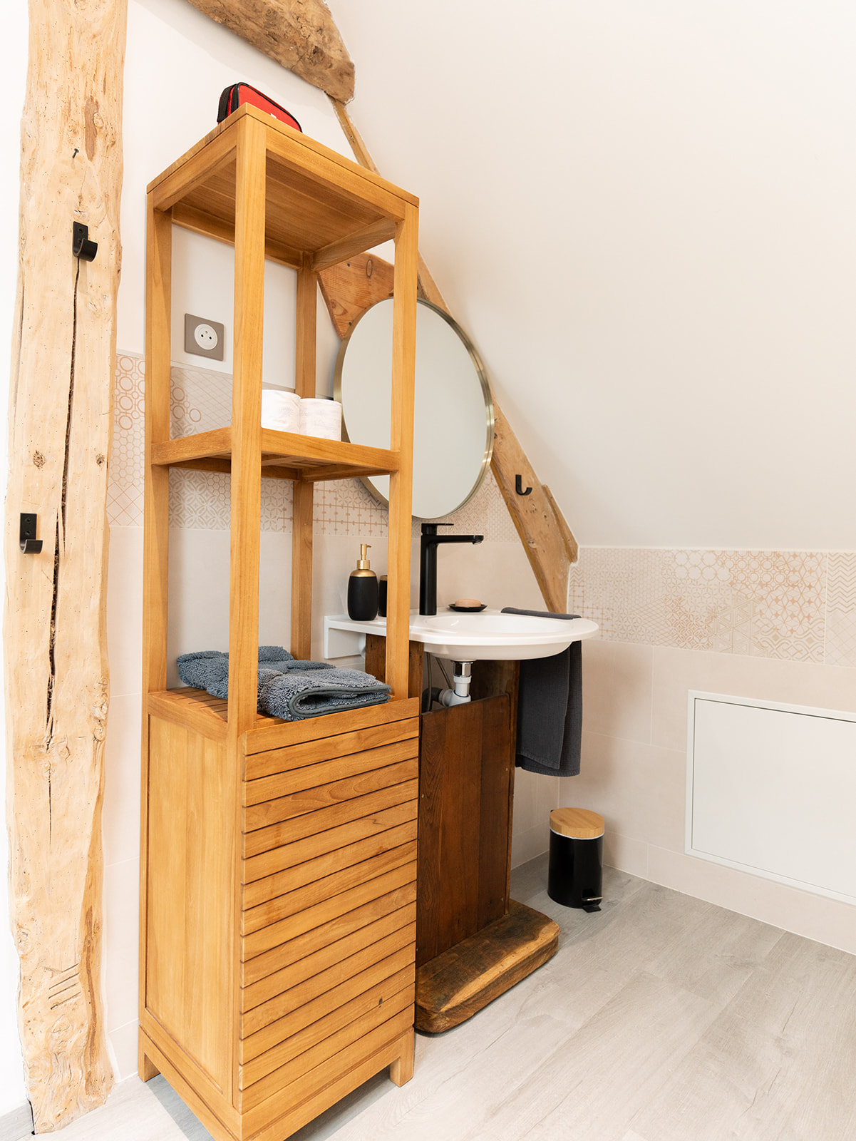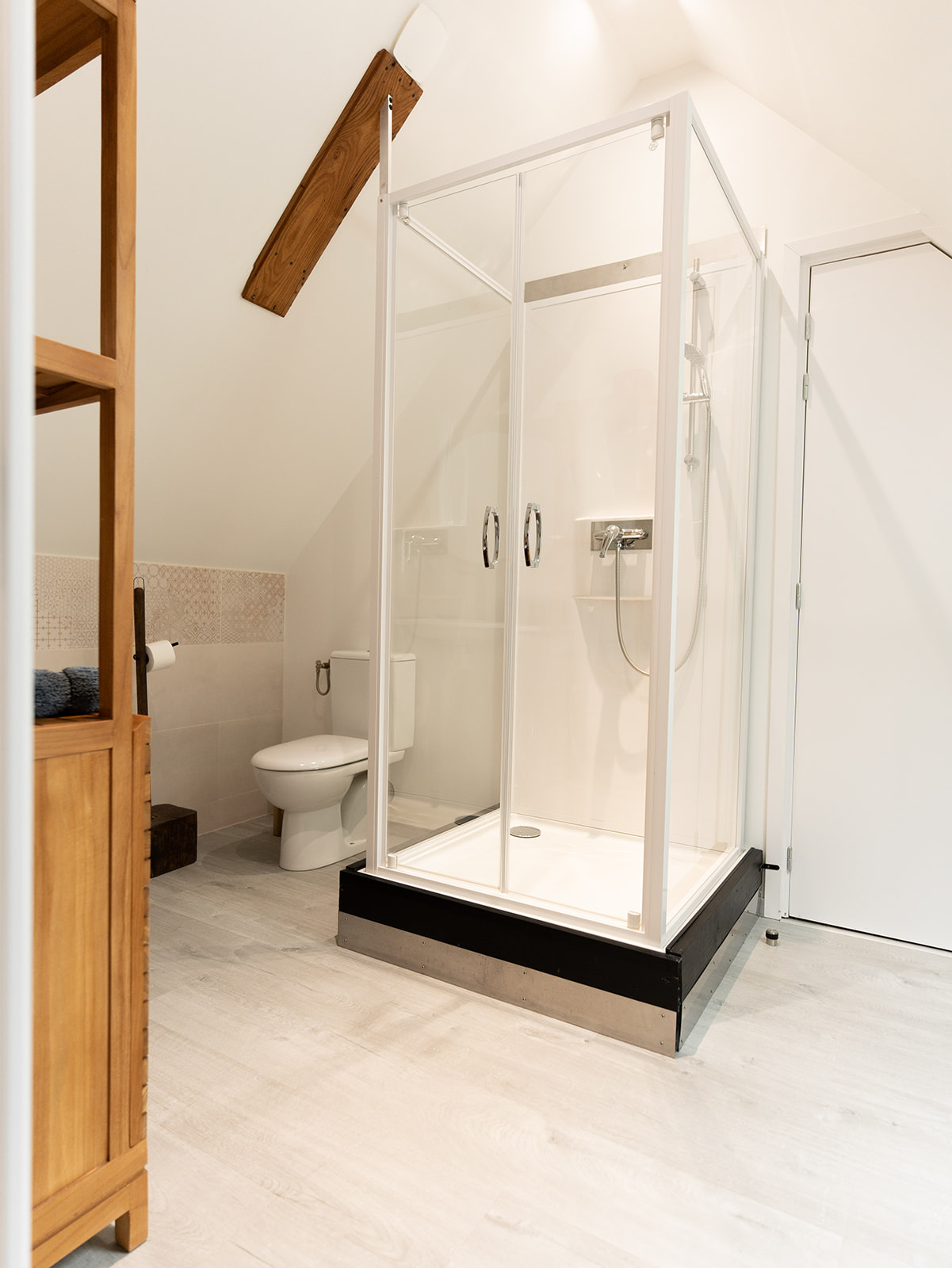 Enfin, la salle d’eau avec douche et sanitaires est en bout de chambre.